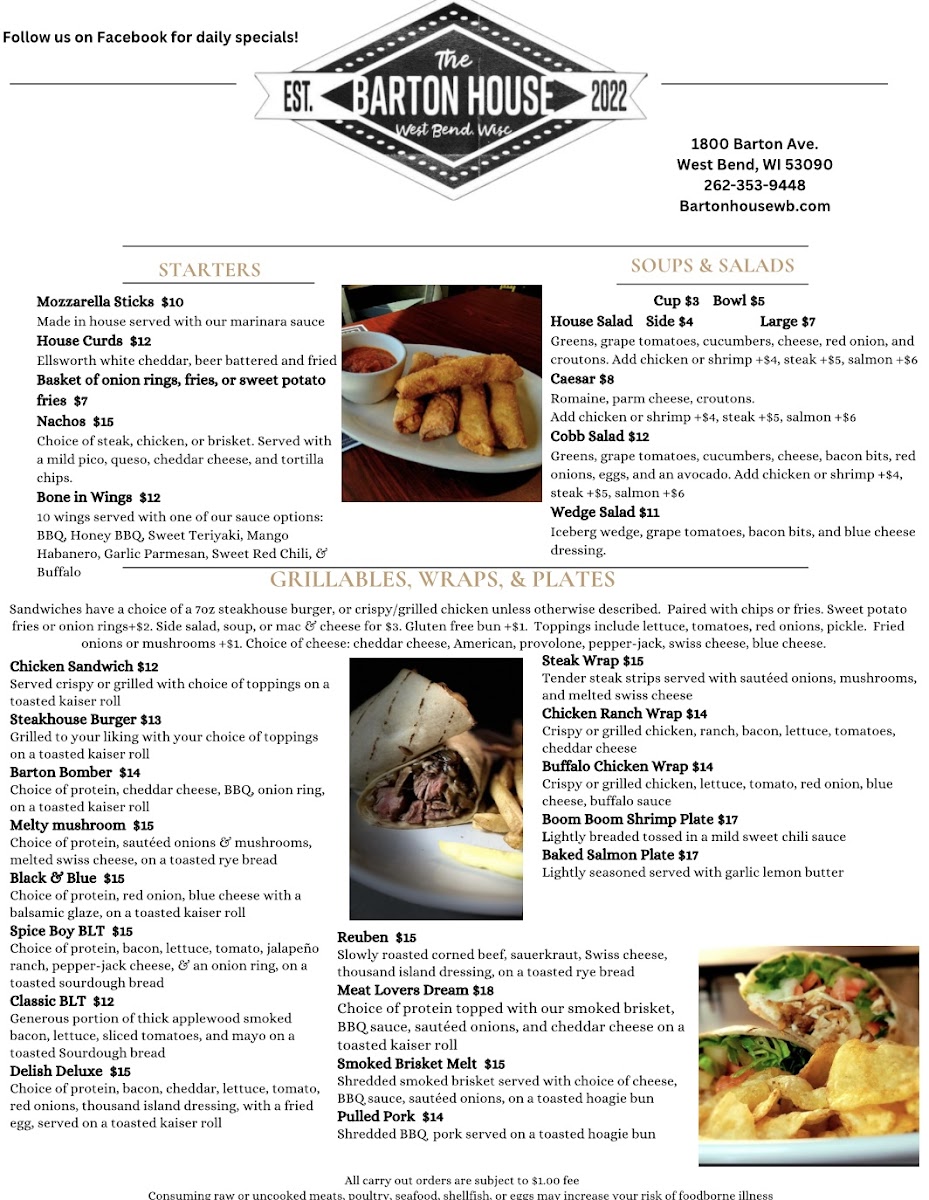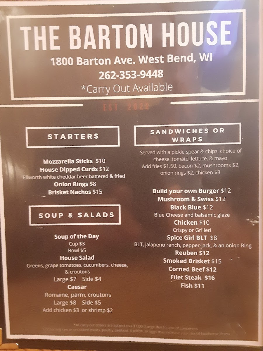Welcome to The Barton House, a vibrant culinary gem nestled in West Bend, Wisconsin. This inviting restaurant merges welcoming service with an impressive menu that captures the spirit of comfort food. Highlights include the famous brisket nachos, which diners raved about, alongside a selection of creatively crafted sandwiches like the mouthwatering Reuben and the delightful tuna sandwich.